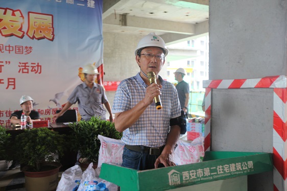 正值全國第十七個“安全生產月”,此次安全專項活動本著“生命至上、安全發展”的理念,為推動安全生產重點工作落實,推動安全理念深入人心,6月26日上午,西安市住房保障和房屋管理局在丈八路保障房建設項目一線施工現場開展了2018年“安全生產萬里行”專項安全教育活動,聚焦責任落實、科技強安、依法治安等方面的重點內容。 西安市第二住宅建筑公司積極承辦了此項活動,參加本次活動局屬房管處、保障處和保障中心的有關負責同志,還有開發總公司、經營一公司、經營二公司、經營三公司、工商業經營公司、住宅一公司、林華監理等單位負責安全管理的人員以及項目部各施工班組共計410余人。同時邀請中國安全健康教育中心安全應急科專職教官作了現場指導。